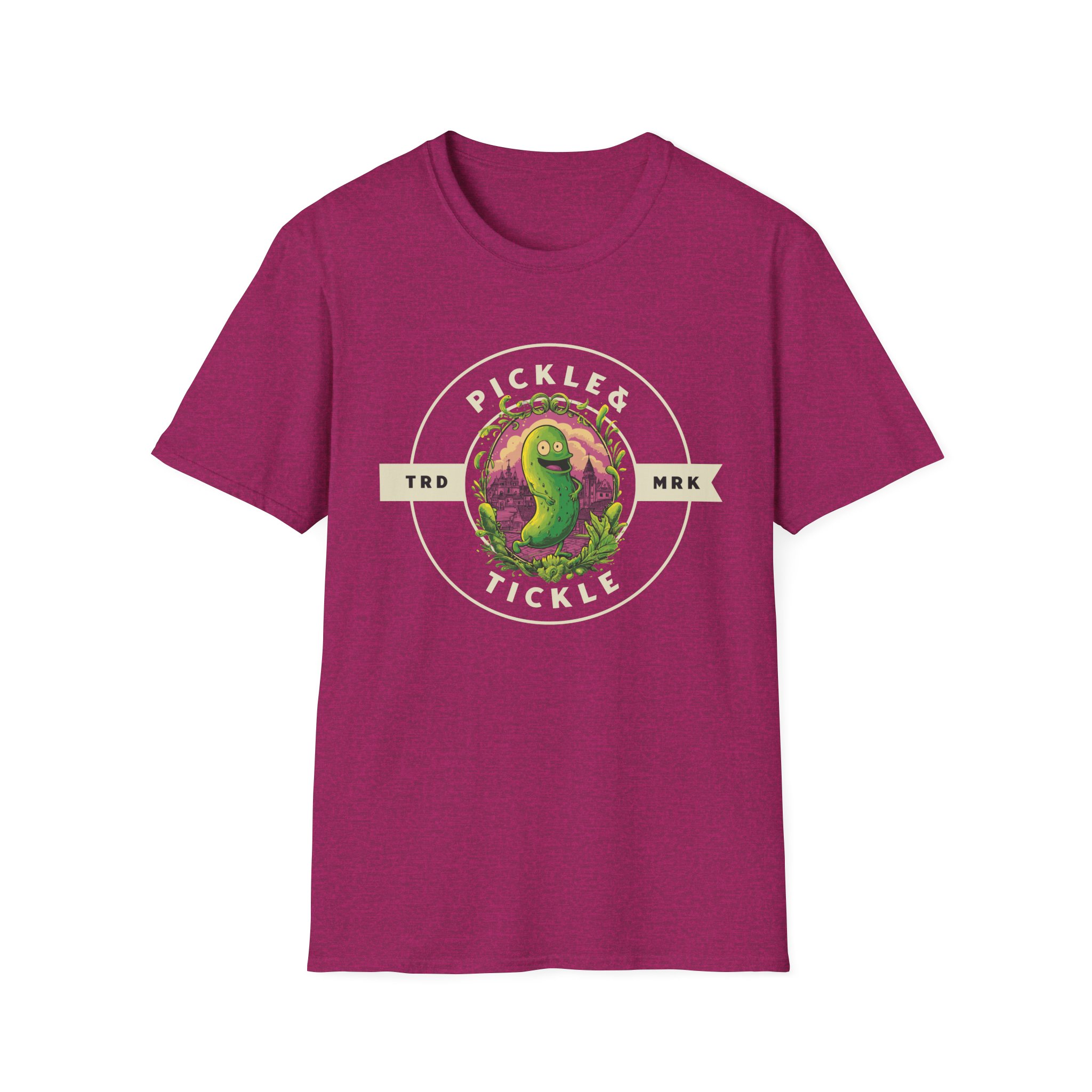 This soft, lightweight tee carries a playful, vintage-style pickle mascot centered in a circular badge—“Pickle Tickle” stamped in worn lettering. The illustration’s slightly distressed colors pop […]
