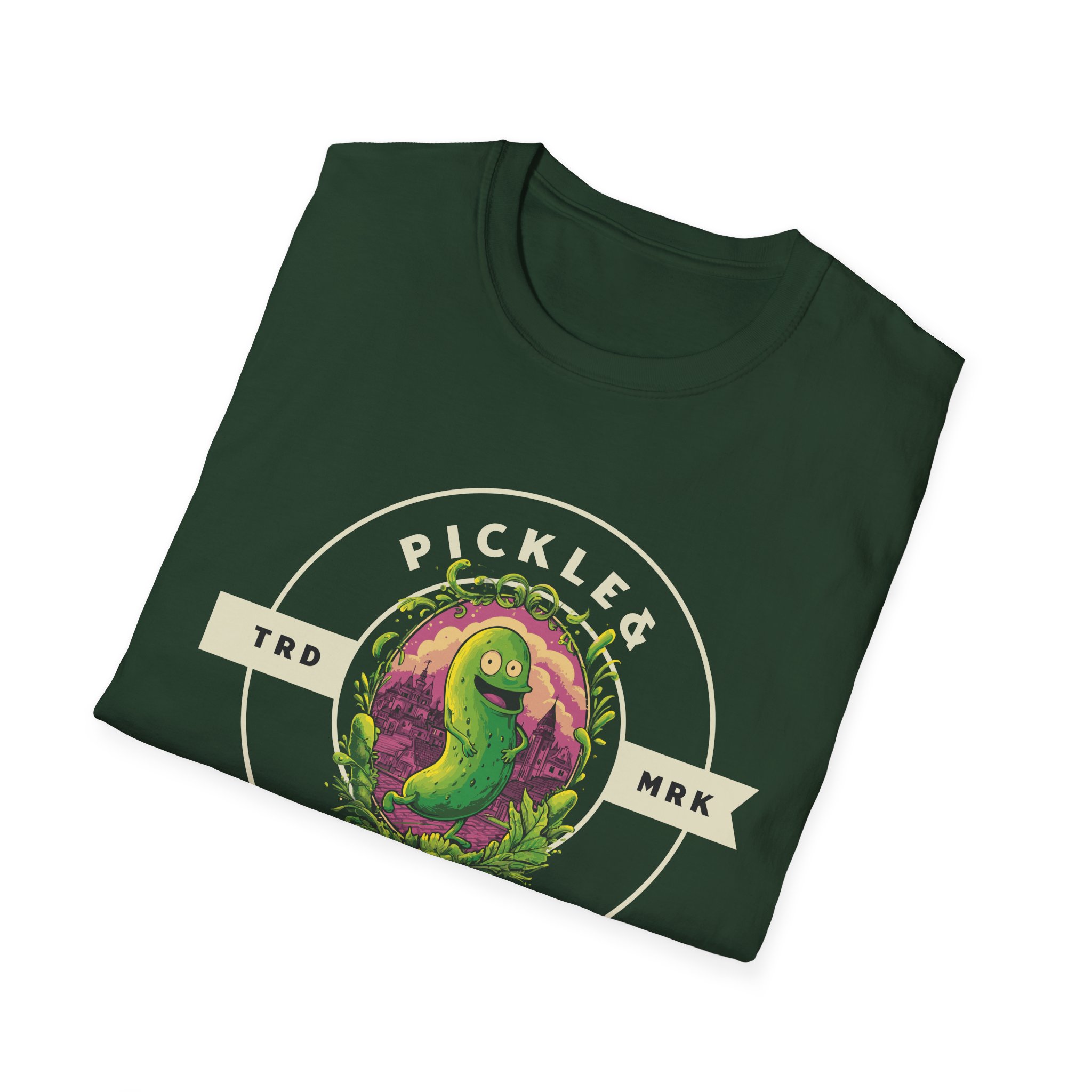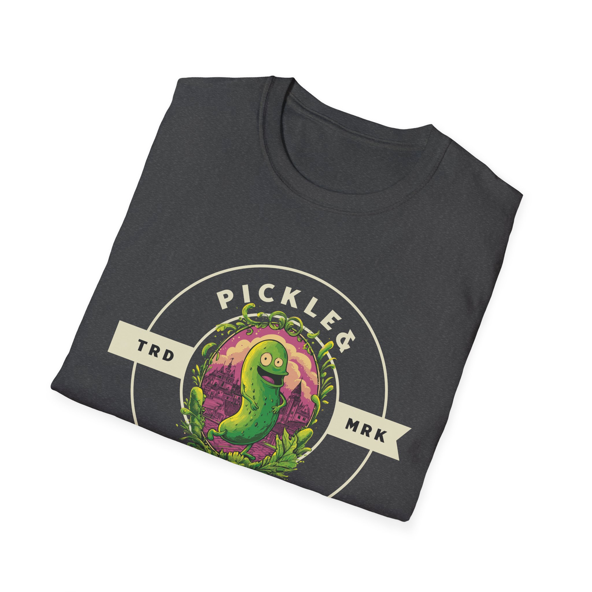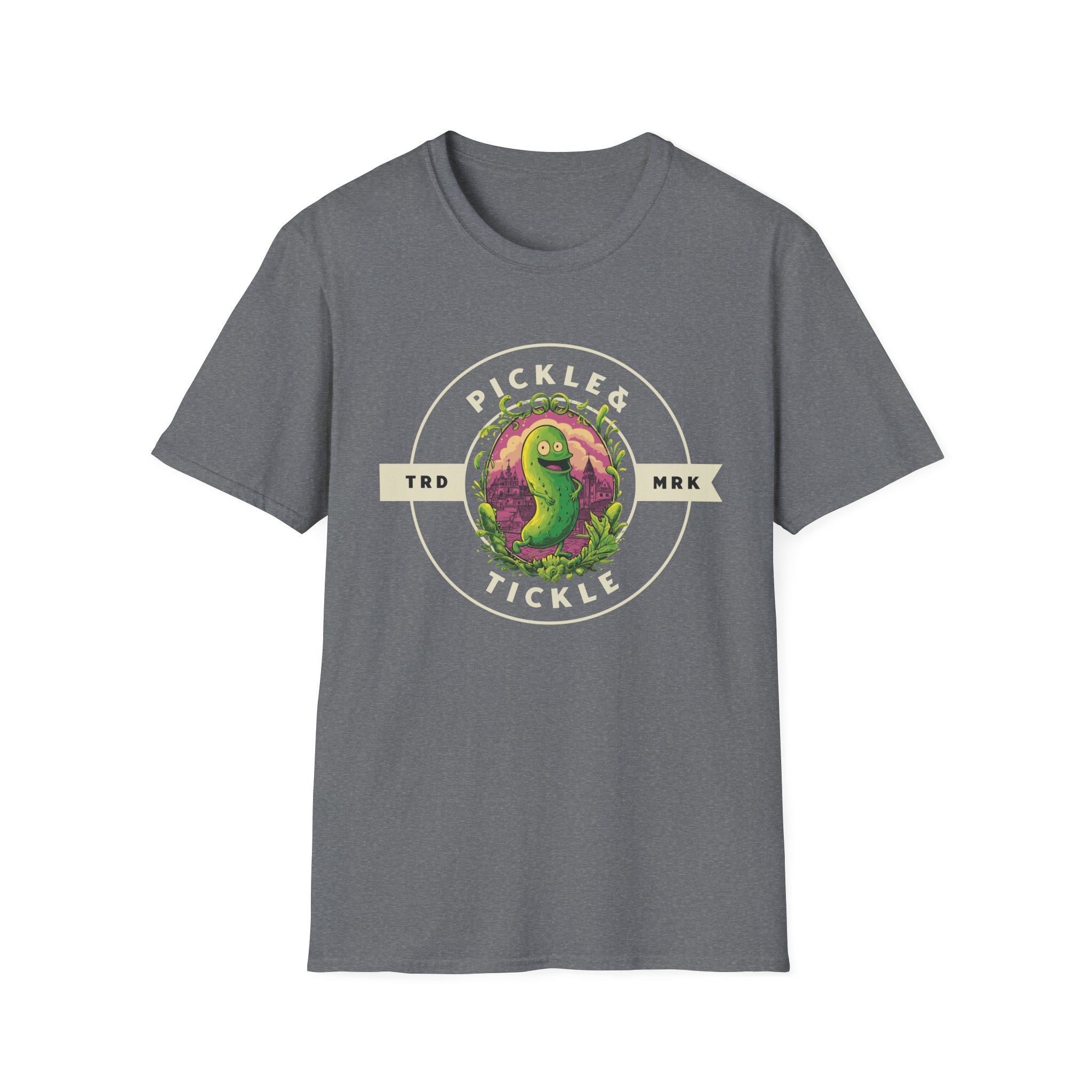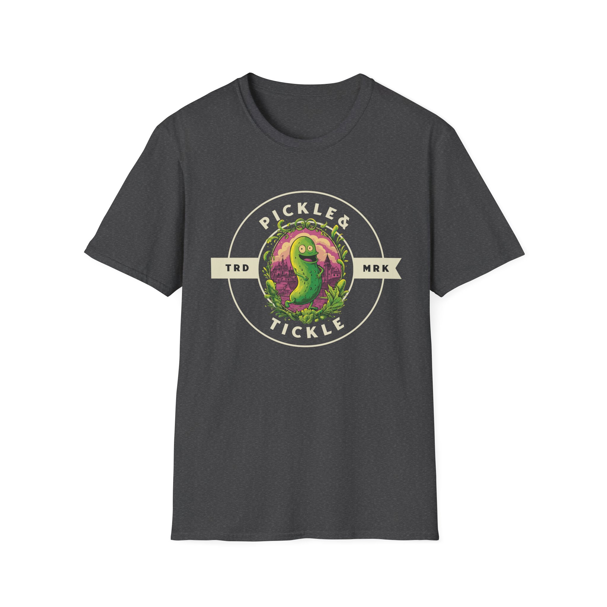 This soft, lightweight tee carries a playful, vintage-style pickle mascot centered in a circular badge—“Pickle Tickle” stamped in worn lettering. The illustration’s slightly distressed colors pop against a deep black background, giving it a retro diner-meets-skate-patch vibe. Wear it to spark laughs at casual meetups, or slip it on for chilled nights at local bars and skate spots. The crew neck and classic fit let the graphic sit front-and-center while keeping your silhouette clean. It feels lived-in from the first wear: soft against the skin, breathable in warm weather, and easy to layer under a flannel or jacket when the evening cools. This tee speaks to people who love tongue-in-cheek humor, quirky art, and pieces that start conversations without shouting for attention.